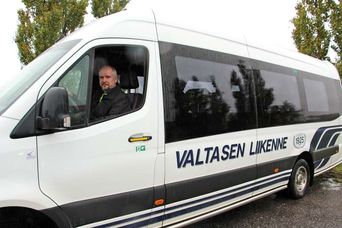 Reilun kymmenen hengen yrityksessä toimitusjohtajan työpäivään mahtuu monenmoista: toimistotöitä, autojen huoltoa, ajamista. Petri Valtanen ajaa itse yhtä koulukuljetuslenkkiä sekä tilausajoja, linjaliikennettä harvemmin.